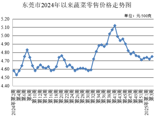 第3周,監(jiān)測(cè)的30種蔬菜農(nóng)貿(mào)市場(chǎng)零售均價(jià)為每500克4.75元,較上周上升0.64%。其中,葉菜類農(nóng)貿(mào)市場(chǎng)零售均價(jià)為每500克4.85元,較上周上升0.21%;非葉菜類農(nóng)貿(mào)市場(chǎng)零售均價(jià)為每500克4.67元,較上周上升0.86%。