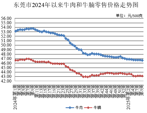 第9周,所監(jiān)測(cè)的牛肉農(nóng)貿(mào)市場(chǎng)零售均價(jià)為每500克46.59元,較上周下降0.19%。牛腩農(nóng)貿(mào)市場(chǎng)零售均價(jià)為每500克43.09元,較上周下降0.12%。雞肉農(nóng)貿(mào)市場(chǎng)零售均價(jià)為每500克16.73元,較上周下降0.24%。